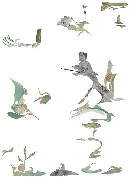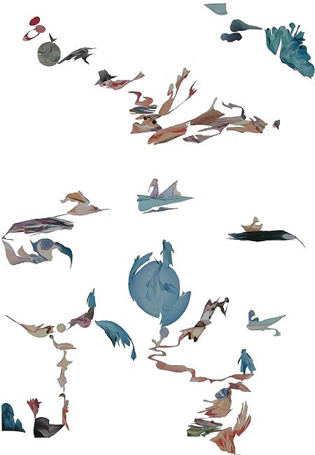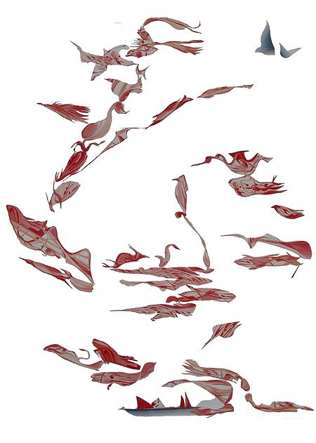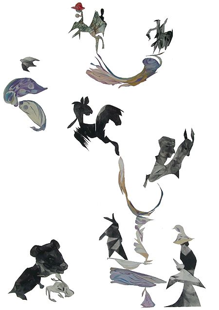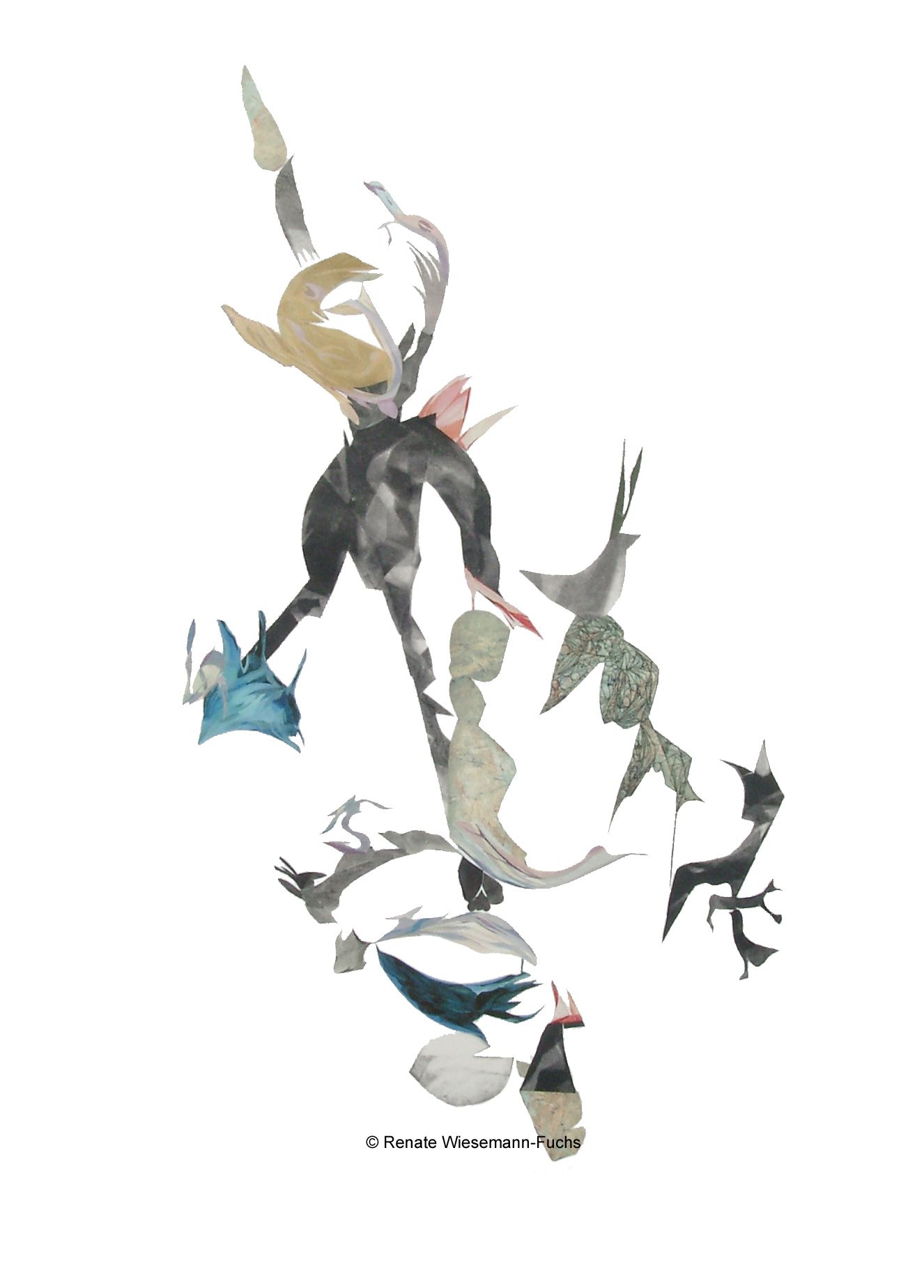 Herrisch begehrt Tauross die Nixe. Sie weigert sich, schickt ihm die Geste des Schwans entgegen.-Vom einsamen Knaben mit Gans trennen sich böse Schwimmer, befreit sich der Märchenprinz.-Kuhhuhn prescht durch das Echo der Raubvögel... Seelchen, bleib standhaft!-